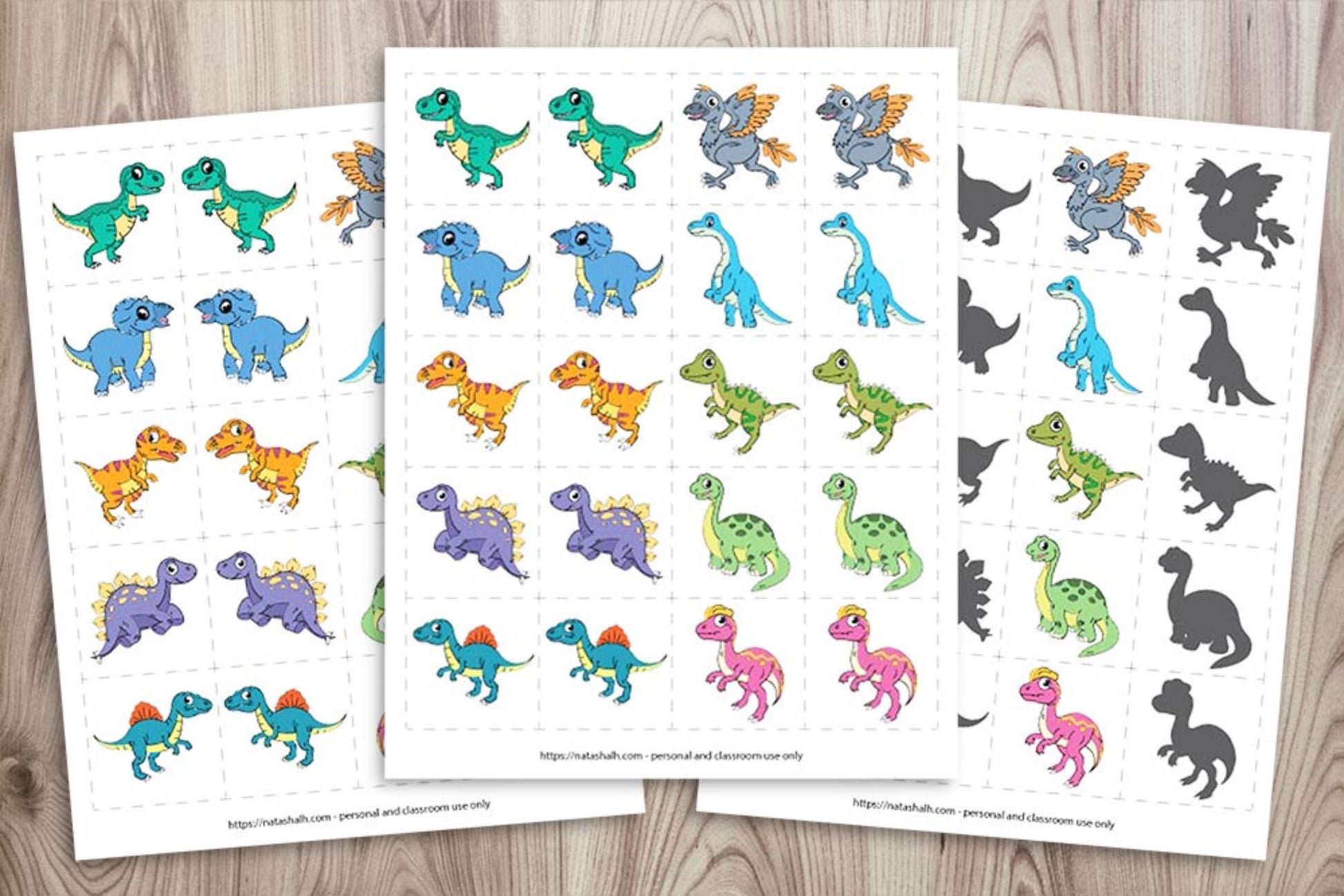 Keep the dino-lover in your life busy with these dinosaur matching cards! They're great for children of all ages. Young children, including toddlers, can use them face up as a matching game. Older children can turn them face down and play dinosaur memory. Combine multiple sheets for an even more challenging game!