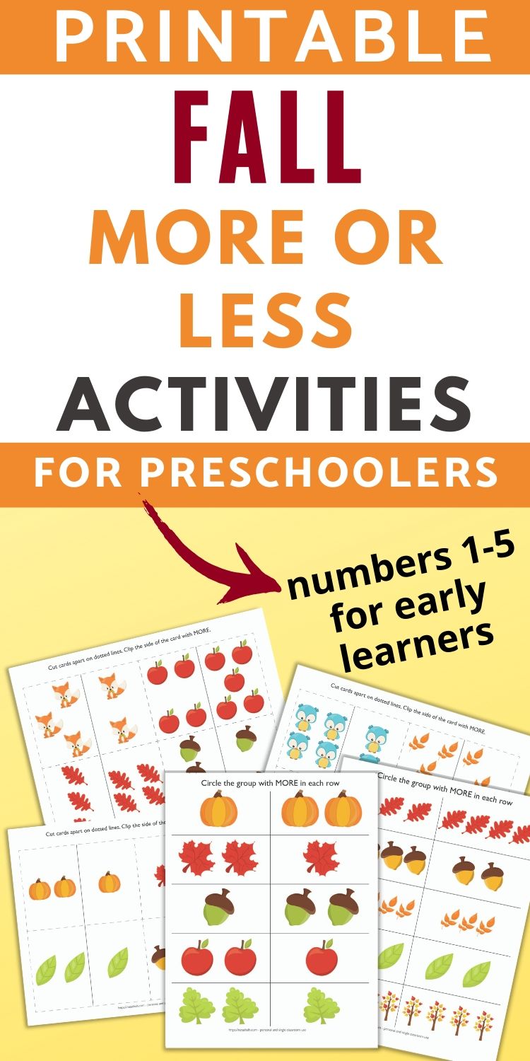 These fall themed "more or less" printables are a fun way for your early learner to work on their important pre-counting skills.