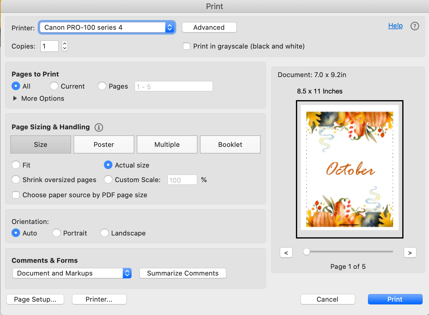 Happy Planner sized pages have a light dotted line for easy trimming. Make sure to print them at actual size/100% as shown in the third image to ensure the sizing is correct.