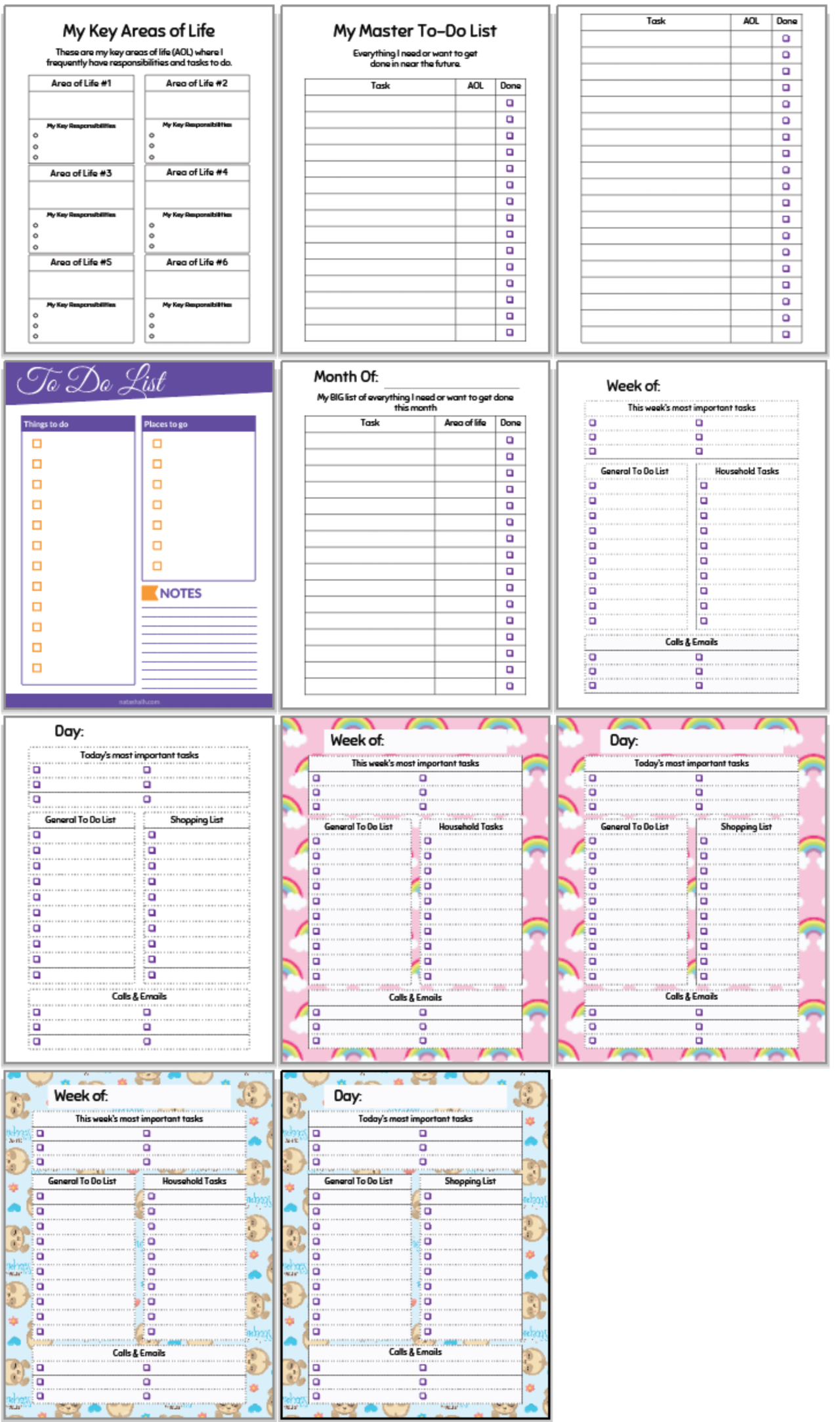 - A master planner to do list with areas for your key responsibilities in all aspects of your life
