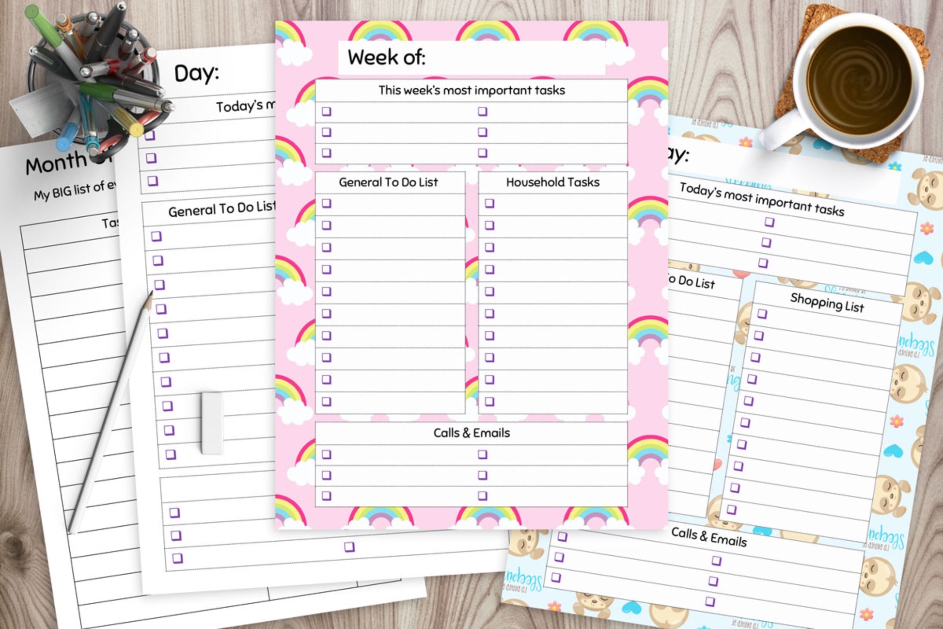 - Rainbow weekly & daily to do lists